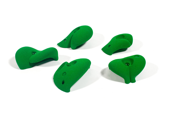 Macro Goodies are suitable for setting easy routes as well as on slabs and as on over hands. Each and every hold also carries an extra screw hole, which enables the route setter to position the hold more accurately, and prevents spinning.